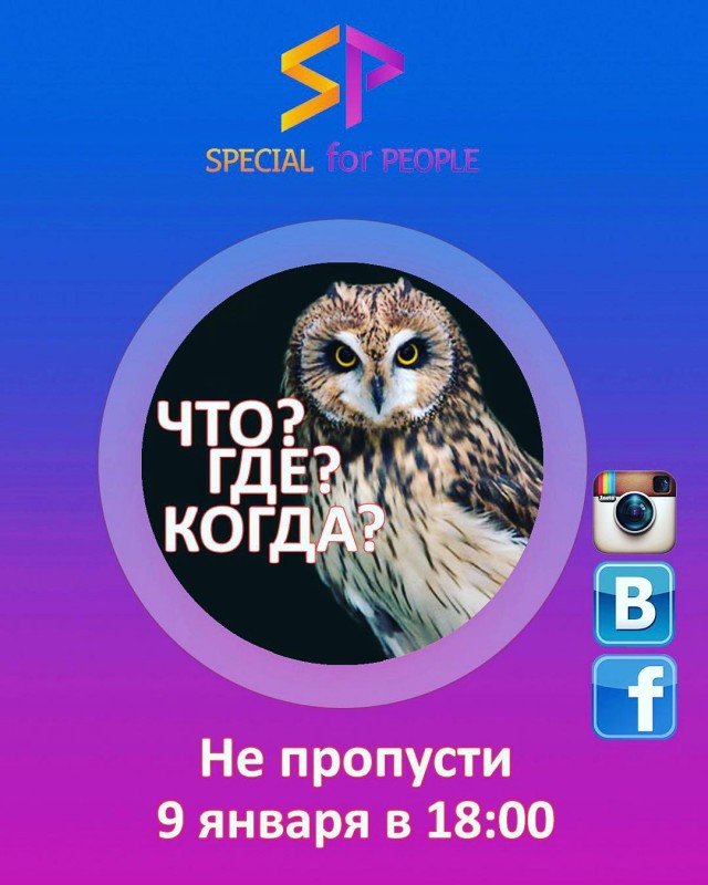 В субботу в 18:00 состоится вторая игра "Что? Где? Когда?" в новом году!