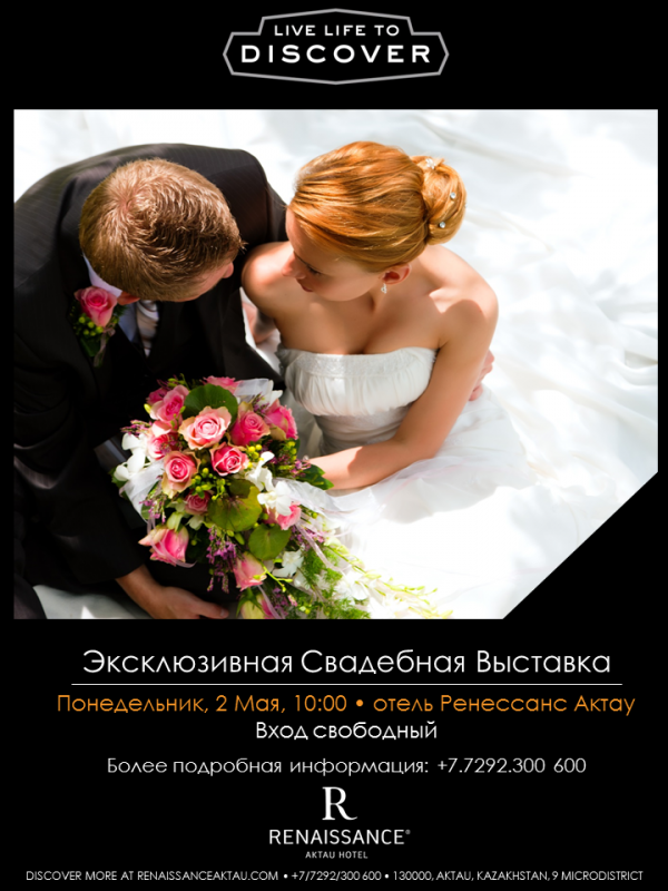 В отеле Ренессанс Актау состоится ежегодная Свадебная Выставка, на которой молодые пары, планирующие создание семьи, смогут воспользоваться опытом самых ярких представителей и профессионалов, а так же познакомиться с многочисленными возможностями свадебной индустрии нашего города.