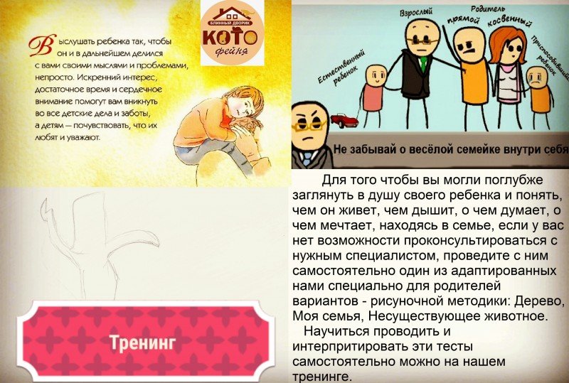 Практикующий психолог Яковлева Александра Ивановна подробно расскажет об этом на тренинге. А также поможет прочитать заранее принесенные Вами рисунки Ваших детей.