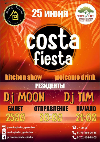Machu Picchu приглашает вас на атмосферную хаус пати "Costa Fiesta"