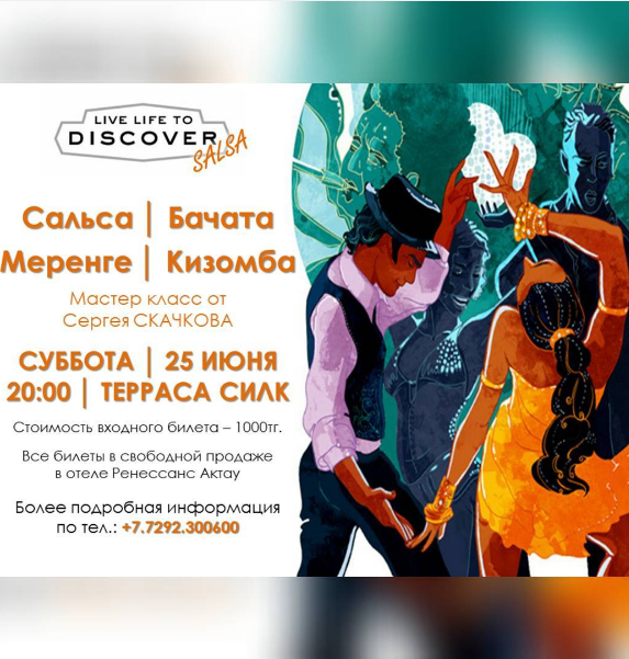 Сальса, Бачата, Меренге, Кизомба - Мастер класс от Сергея СКАЧКОВА. Вход по билетам! Билеты в свободной продаже на ресепшен отеля Ренессанс Актау!