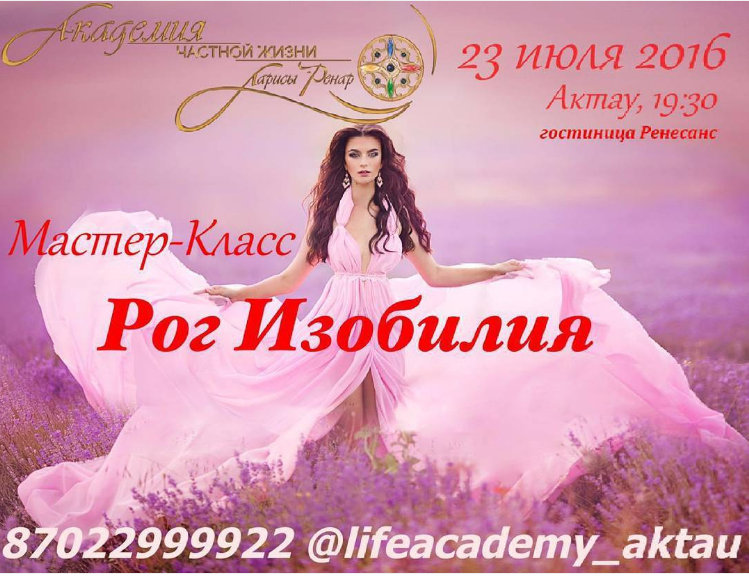 Милые девушки города Актау, академия частной жизни Ларисы Ренар приглашает Вас на Мастер-Класс - Рог изобилия! 23 июля в 19:30 вечера.