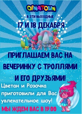 В эти выходные Oinatown (Ойнатаун) приглашает на вечеринку с Троллями и его друзьями!