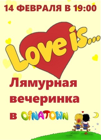 14 февраля, в день всех Влюблённых, в семейно-развлекательном центре "OINATOWN" пройдёт "Лямурная Вечеринка" . Мы разыграем сертификаты на мастер-класс по росписи имбирного печенья, карточки OINATOWN с 2000 бонусами, 15% разовую скидку в кафе CAMPETTO, сертификат на игру в XBOX в течении часа и сертификаты на посещение "ONERLAND".