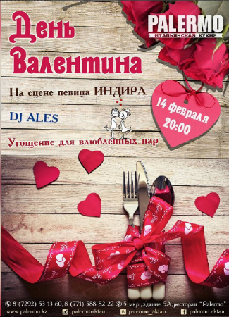 Хотите подарить своей второй половинке атмосферу тепла, уюта и романтики? Напомните друг другу о своих чувствах за ужином в ресторане @palermoaktau , ведь для этого и существует День Валентина!