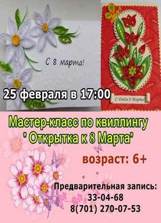 В честь Всемирного женского дня семейный центр "Апельсинка" проведет увлекательный мастер-класс по квиллингу "Открытка к 8 Марта".