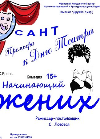 В рамках празднования Международного дня Театра театр САНТ приготовил для зрителей новый премьерный спектакль "Начинающий жених" по пьесе Сергея Белова, , которого называют "Господин Аншлаг" за неизменный успех его пьес у зрителей.