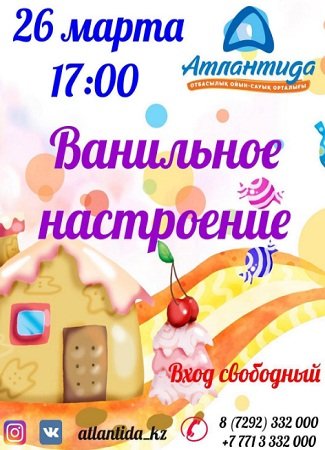 Приглашаем всех в СРЦ "Атлантида" посетить развлекательную программу для детей "Ванильное настроение".