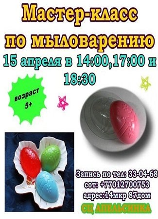В СЦ "Апельсинка" состоится мастер-класс по мыловарению.