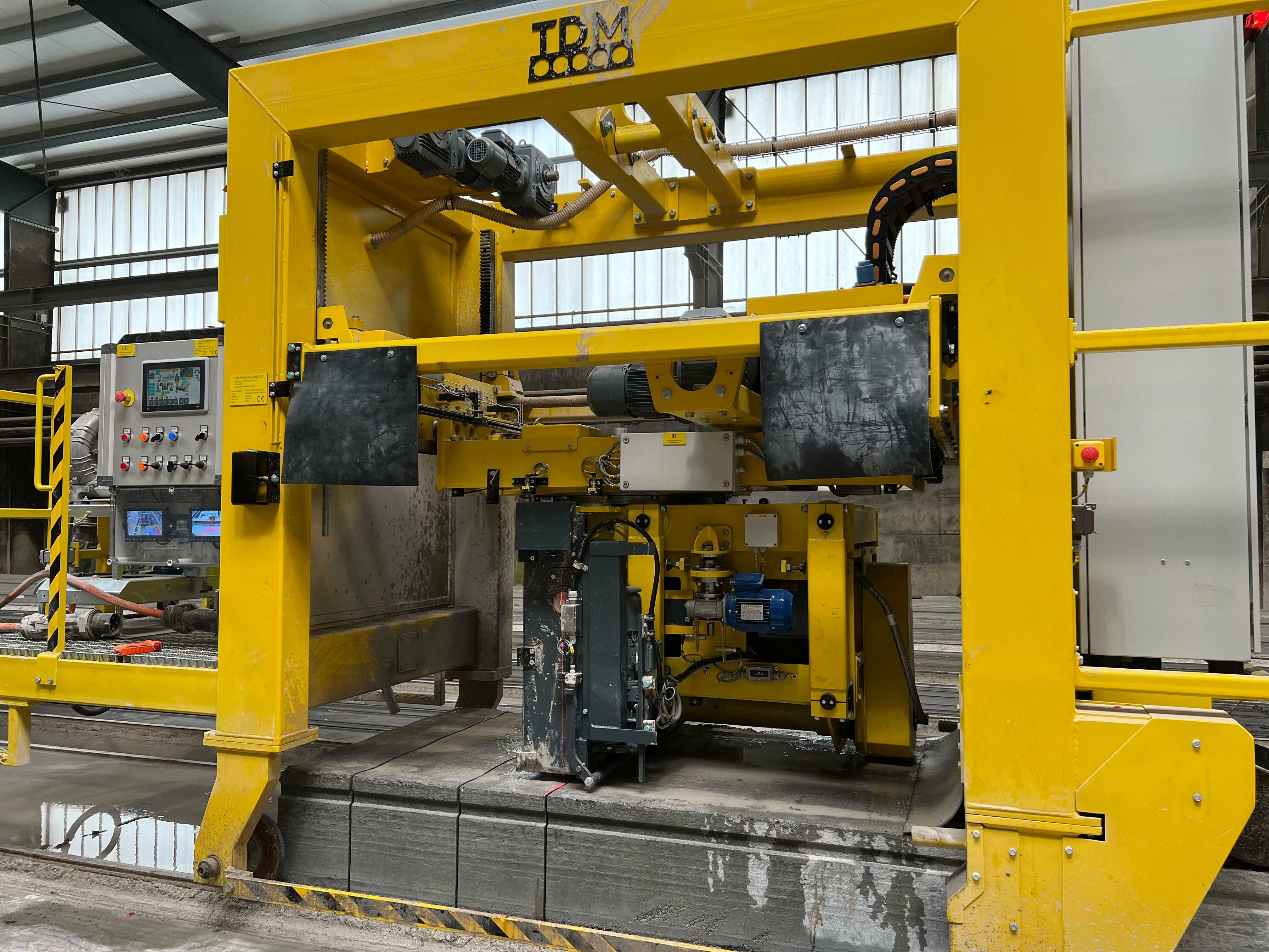 Оператор или автоматическая система управления задает точные параметры реза, включая скорость и угол. Пила движется по формовочной дорожке с высокой скоростью (до 35 м/мин), выполняя поперечный разрез на свежеотформованном или затвердевшем бетоне. Бесступенчатая регулировка скоростей и оборотов мотора привода диска позволяет идеально подстроиться под разные профили и высоту плит (до 60 см). Эта технология необходима для быстрого и чистого разделения длинномерных изделий на готовые элементы требуемой длины, устраняя необходимость в трудоемкой и менее точной ручной доработке.
