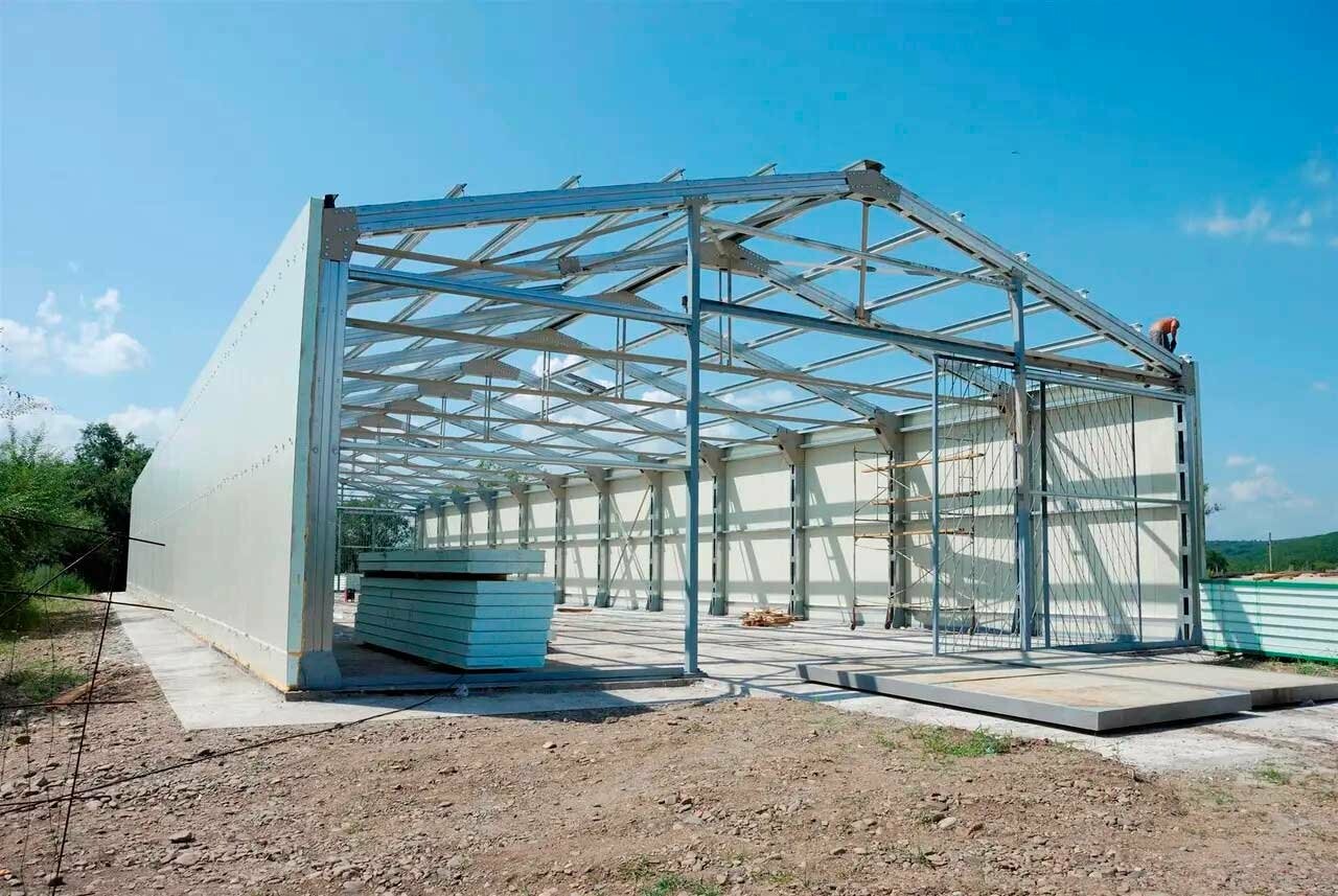 - Установка панелей и кровли. Сэндвич-панели монтируются быстро, обеспечивая прочность, теплоизоляцию и защиту от внешних факторов.
