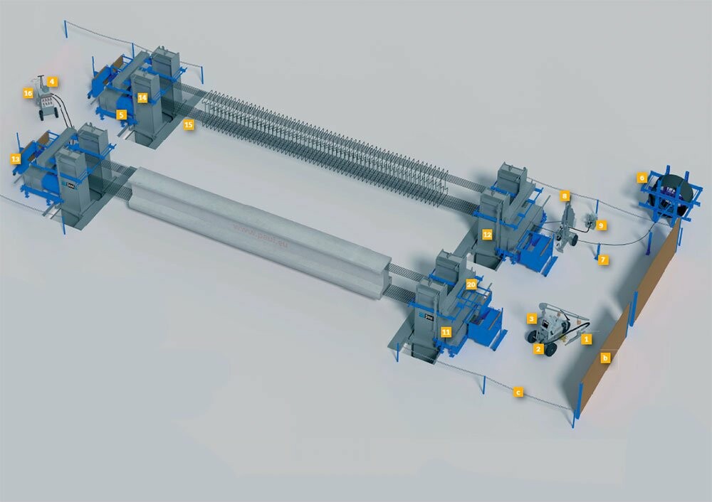 - Широкая универсальность и технологическая адаптивность: модельный ряд включает компактные мини-версии для небольших бетонных элементов, классические стержневые агрегаты, однопроволочные варианты и мощные системы группового натяжения для самых массивных пролетных балок.