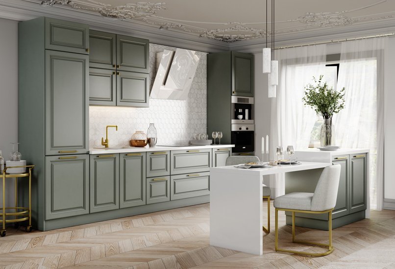 - изысканные декоративные элементы (молдинги, каретная стяжка, металлические акценты);