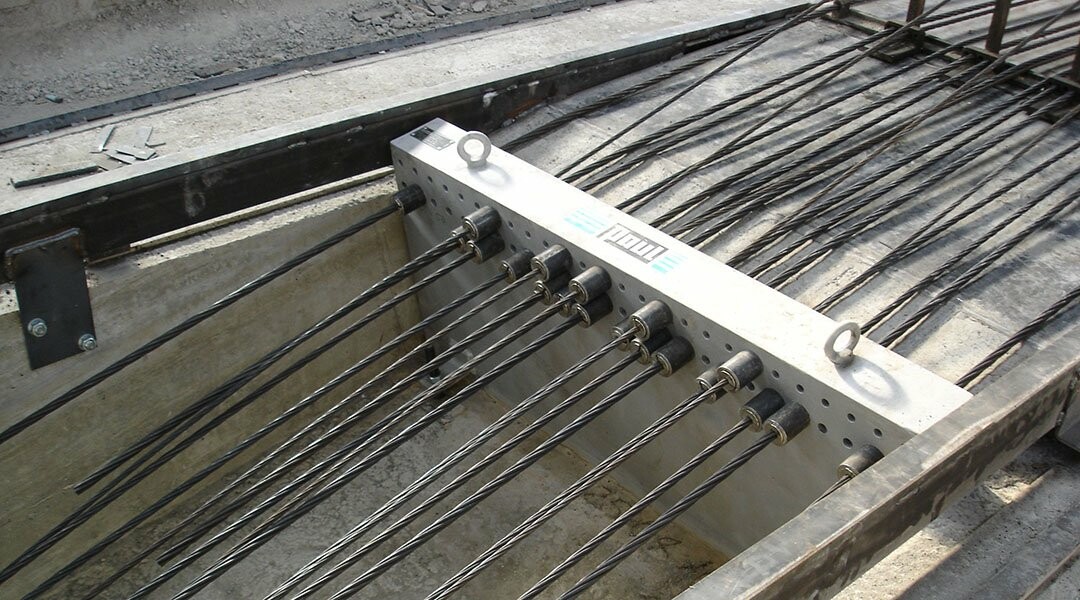 Суть технологии заключается в передаче усилия растяжения от гидравлического инструмента на арматурные элементы до момента заливки бетона или после его затвердевания. Принцип работы базируется на использовании гидравлического давления, которое перемещает поршень домкрата, растягивая проволоку до заданных проектных значений. После достижения нужного усилия арматура фиксируется анкерными зажимами.