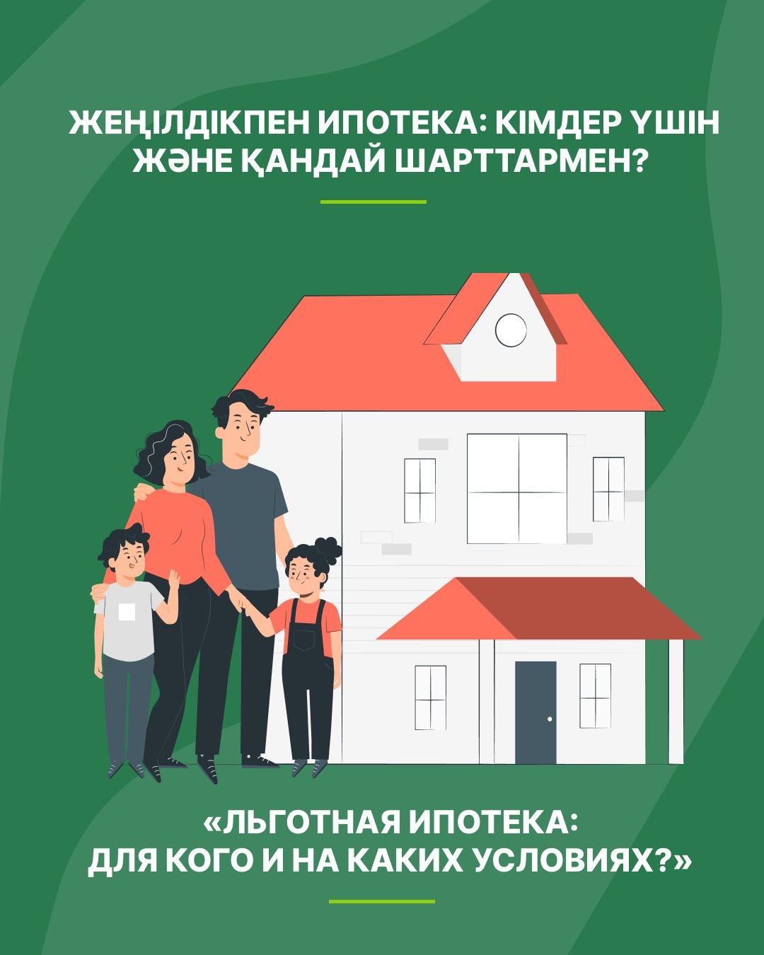 Государственная ипотечная программа для граждан Казахстана с доступными условиями: ставка — 7%, первоначальный взнос — от 20%, срок кредита — до 25 лет. Приобрести можно только готовое жилье в новостройке, введенной в эксплуатацию.