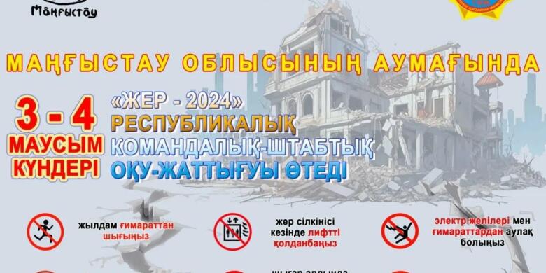 С 3 по 4 июня 2024 года на территории области запланировано проведение Республиканского командно-штабного учения «Жер-2024», передает InAktau.kz. В ходе учения будет проверена система оповещения и готовность служб гражданской защиты к оперативному реагированию на чрезвычайные ситуации, которые могут произойти при землетрясении. Жителей области и города просят сохранять спокойствие и не впадать в панику во время учения.
