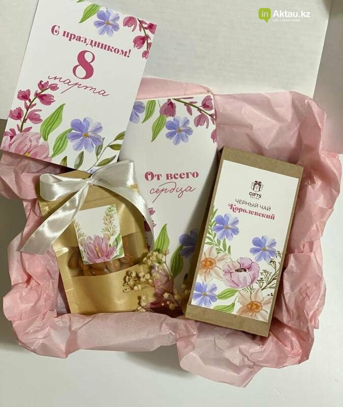 Подарочные боксы в Актау к 8 Марта и для других праздников с бесплатной доставкой. Готовые наборы для мамы, жены, коллеги или любимой — стильное оформление, качественное наполнение.